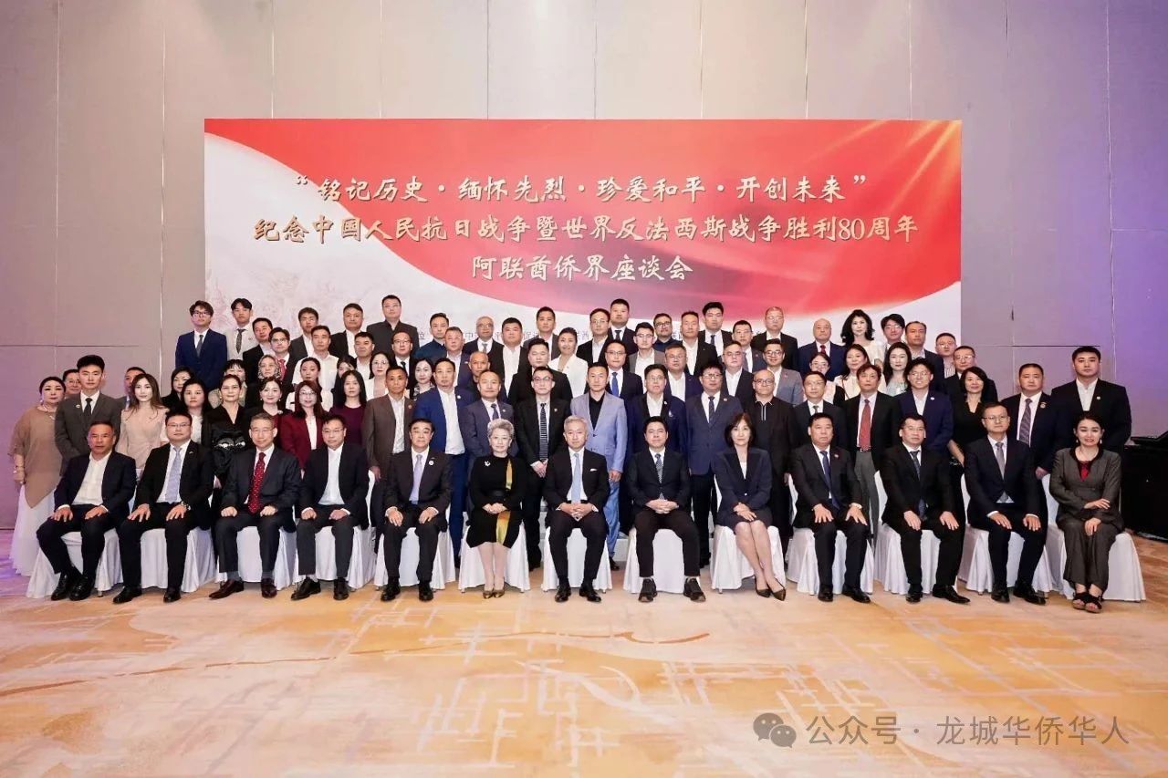 座谈会结束后,全体与会者集体合影留念。本次座谈会不仅是对历史的深切缅怀,更是对爱国精神的再一次传承与弘扬。阿联酋侨界以实际行动再次表明:无论身在何处,海外中华儿女始终与祖国心手相连、同向同行,必将继续为中华民族的伟大复兴和世界的和平发展贡献力量。