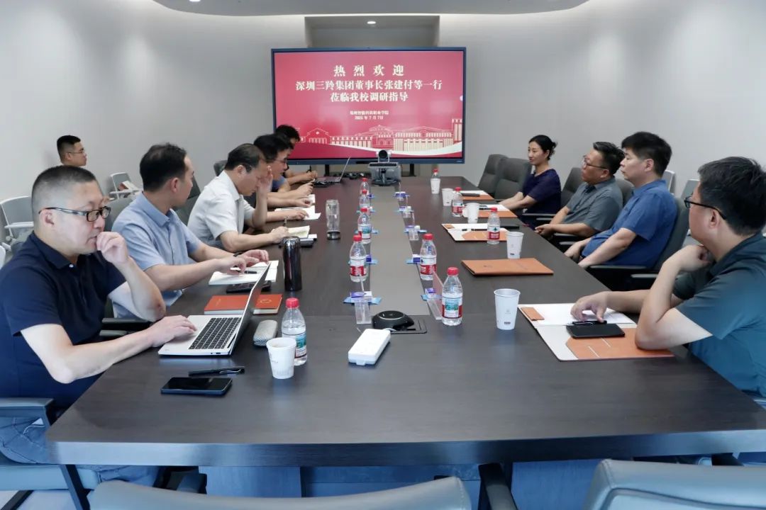 7月7日,深圳三羚集团董事长张建付、副总经理郑龙强一行到校调研交流。省侨商会驻会执行会长、学校校长王广国,副校长张保来、韩万兵及校企合作处、智能制造学院负责人参加座谈。座谈会由张保来主持。