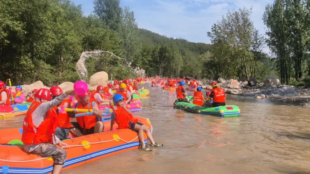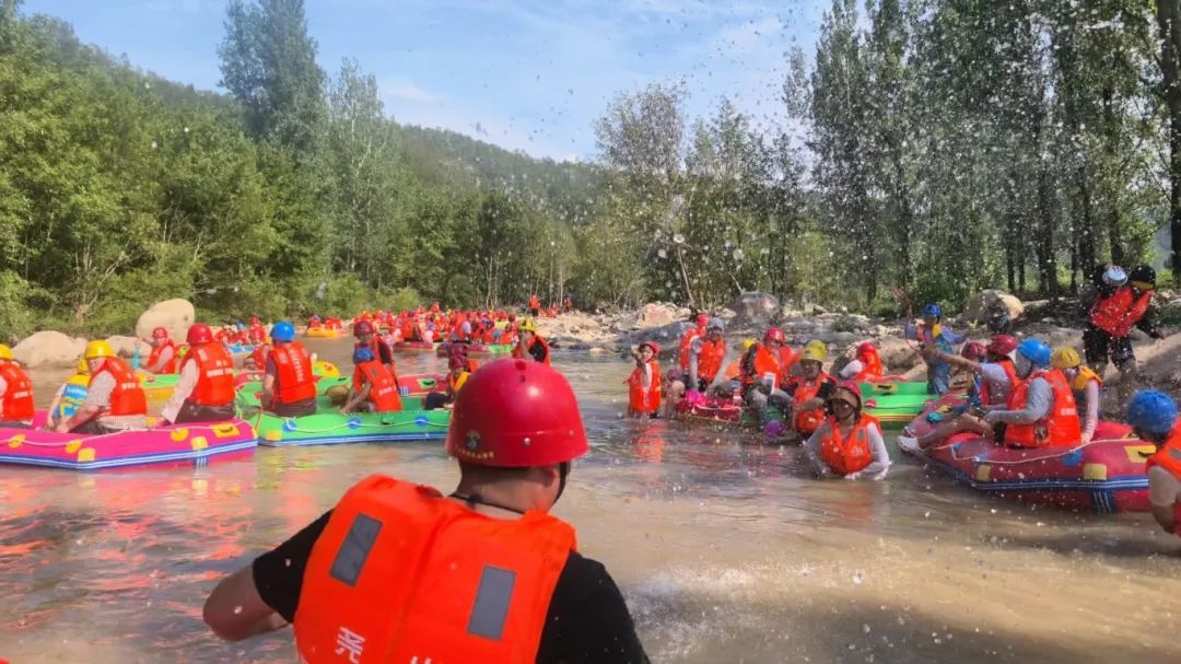 活动首日,众人奔赴有 “中原第一漂” 美誉的尧山漂流。峡谷间激流奔涌,清风裹挟着水汽扑面而来,大家乘艇而下,在协作划桨中感受速度与激情,在相互呼应中拉近彼此距离。夏日的燥热被清凉的河水驱散,终端客户与皇沟工作人员的笑声回荡在山谷间,为这场团建写下生动开篇。