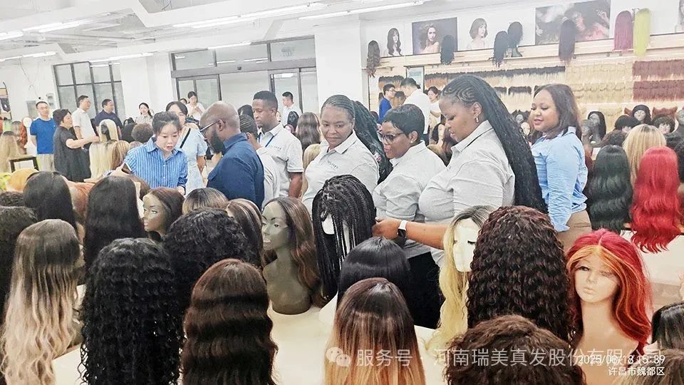 代表团成员均为南非政府机构及地方省份遴选的优秀青年干部,此行旨在通过企业参访深化中南经贸合作,学习中国制造业发展经验。考察期间,代表团在许昌市外联办及魏都区相关工作人员的全程引导下,系统参观了瑞美真发产品国内展示中心(一楼展厅)、国际产品展厅及假发标准生产车间,对企业全产业链运营模式进行深入了解。