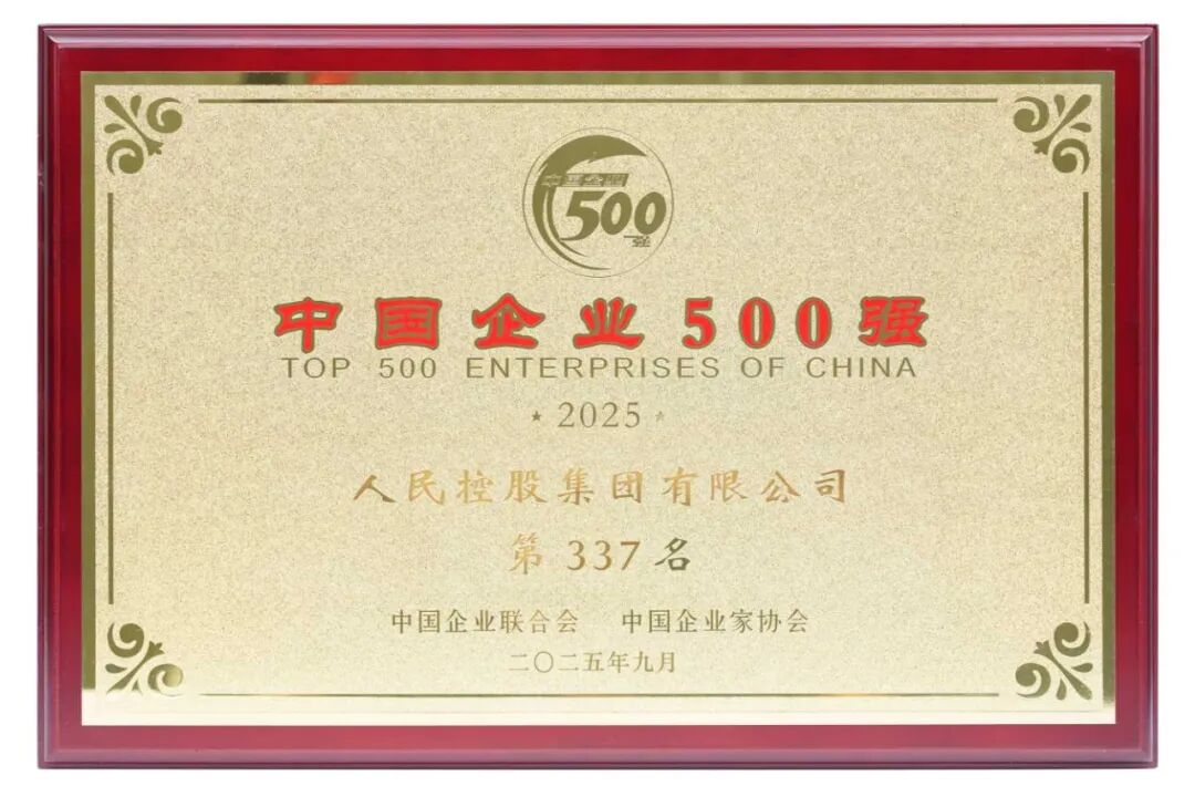 9月15日,中国企业联合会、中国企业家协会正式发布"2025中国企业500强"榜单,中国·人民控股集团荣列第337位,排名较上年大幅提升40位,显示出集团卓越的经营能力和持续的成长性。
