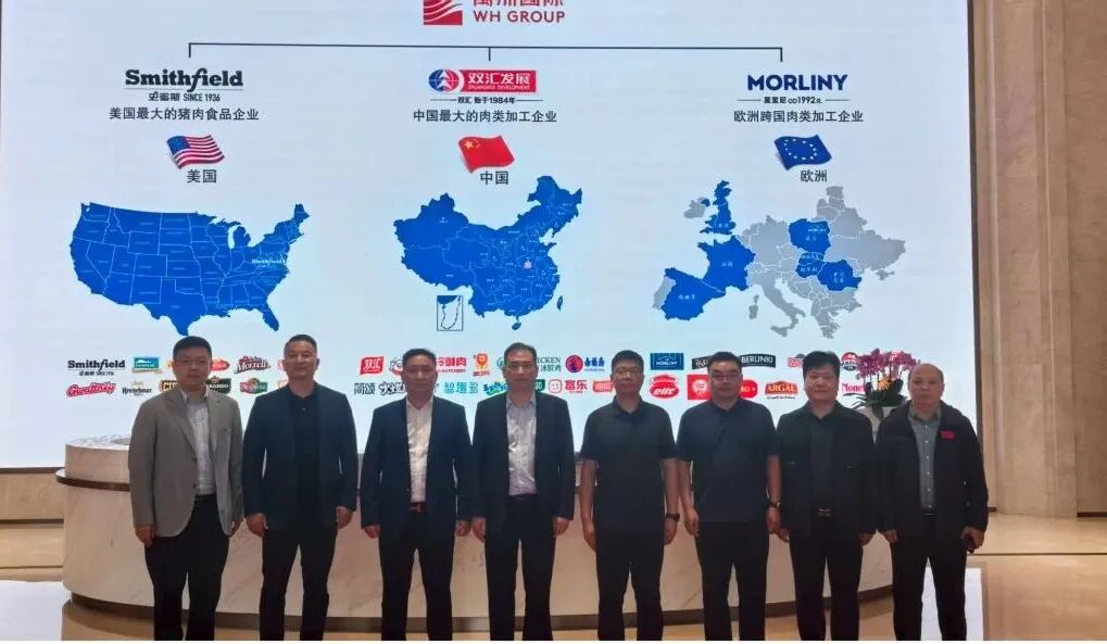 在双汇大厦,漯河市侨商会名誉会长、双汇发展副总裁张斌向考察团一行详细介绍了双汇发展历程、目前产品种类及销售情况等,就农畜品深加工进行了深入交流。