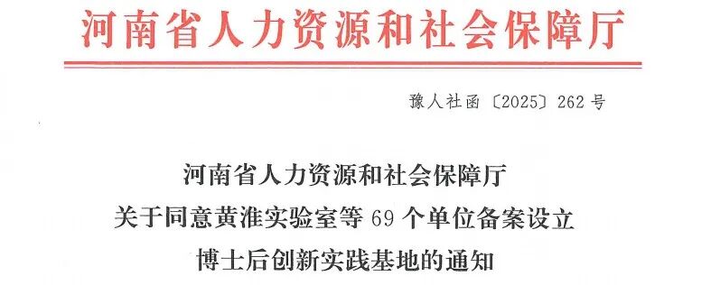 近日,河南省人力资源和社会保障厅正式下发《关于同意黄淮实验室等69个单位备案设立博士后创新实践基地的通知》(豫人社函〔2025〕262号),乔优公司成功通过备案评审获准设立河南省博士后创新实践基地。这一省级科研平台的获得,不仅是乔优公司在高层次人才平台建设方面取得的重大突破,更是企业科研创新实力获得认可的重要体现。