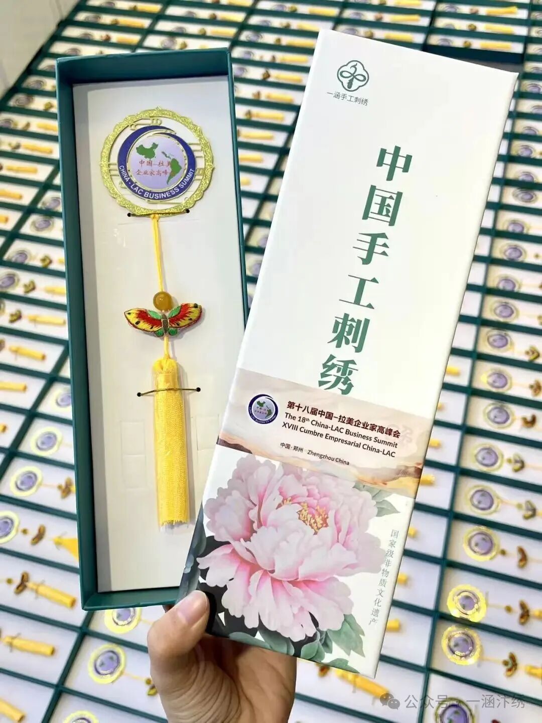 这份承载着深厚文化底蕴的手工汴绣书签,作为本次高峰会的官方伴手礼,有着非凡的意义。作为高规格外事礼品,它既体现了东道主河南省对来自拉美及世界各地远道而来政商嘉宾的崇高敬意与美好祝福,传递了河南的文化温度,也向世界展示了中国传统非遗的非凡魅力,助力中拉文化交流互鉴,推动中华优秀传统文化在国际舞台上绽放光彩。