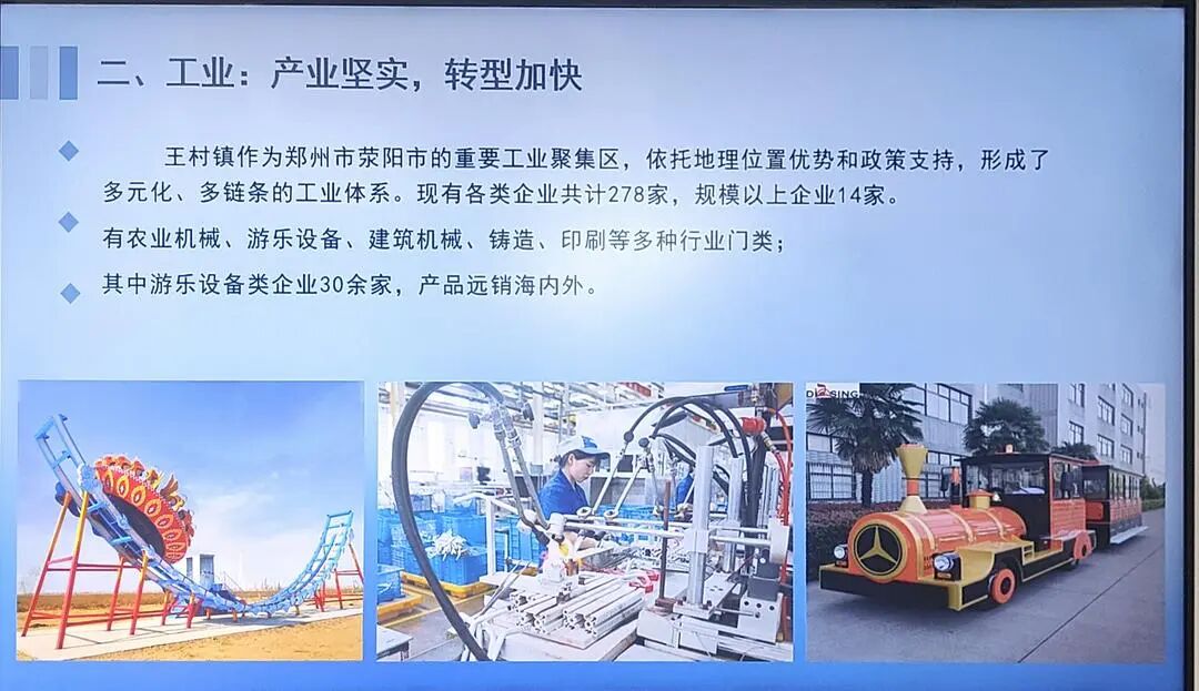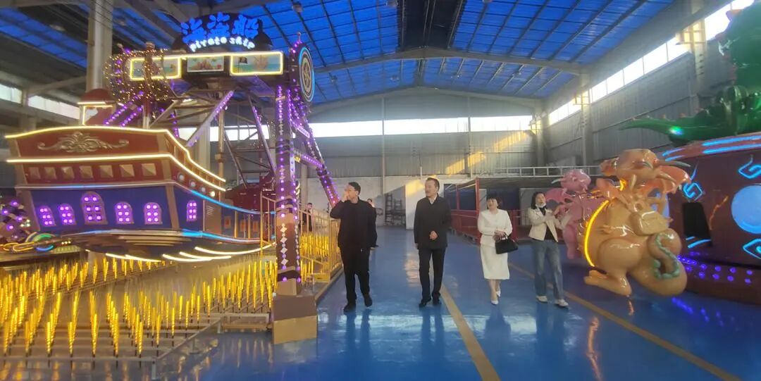 在王村镇产业园区,考察团在镇党委副书记、镇长杜英豪陪同下参观了郑州乐之翔&龙慧游乐设备展销中心。琳琅满目的游乐设施,彰显了荥阳作为国内重要游乐设备产业基地的雄厚实力。