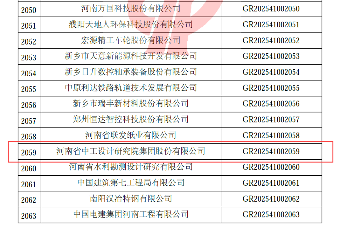 近日,全国高新技术企业认定管理工作领导小组办公室发布《对河南省认定机构2025年认定报备的第一批高新技术企业进行备案的公告》,中工设研院凭借扎实的研发实力、突出的技术创新能力及完善的成果转化体系,成功通过高新技术企业认定。