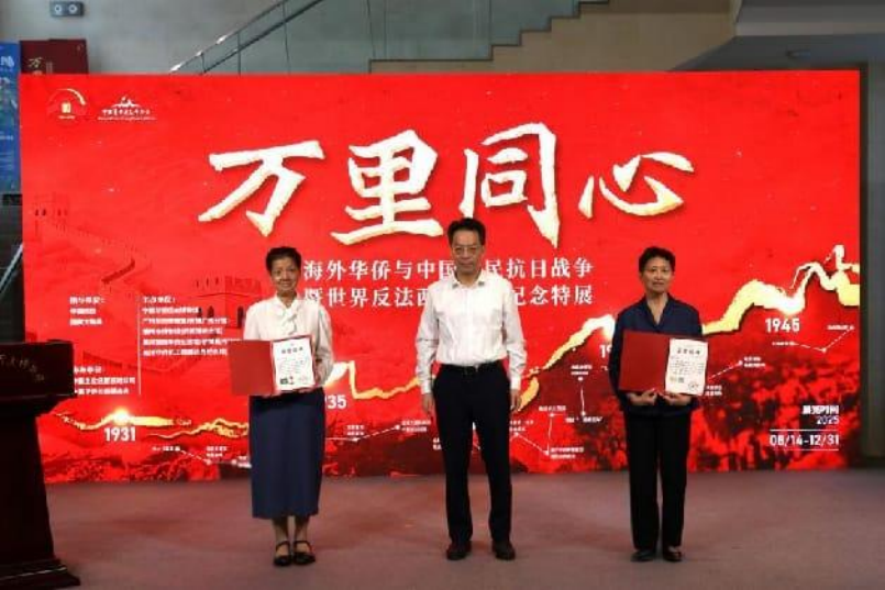 8月14日,“万里同心——海外华侨与中国人民抗日战争暨世界反法西斯战争纪念特展”在中国华侨历史博物馆开幕,该展入选2025年度“博物馆里读中国——弘扬中华优秀传统文化、培育社会主义核心价值观”主题展览推介项目和中国人民抗日战争暨世界反法西斯战争胜利80周年主题陈列展览推介名单。
