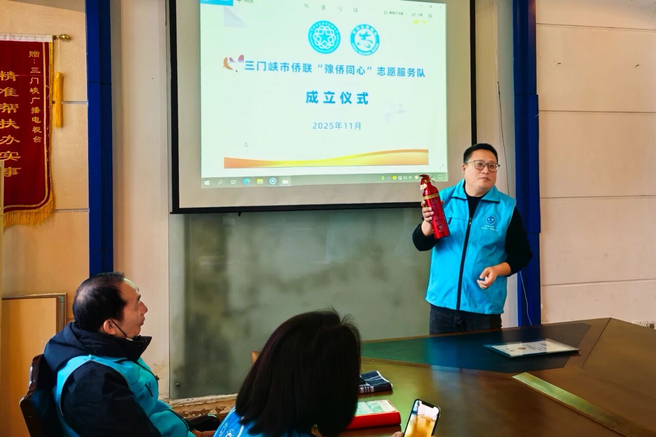 创业同时,潘照亮热心社会公益,企业荣获省级光彩事业先进单位、扶残助残先进单位、精准扶贫先进单位等荣誉称号。此次受聘三门峡市侨联“豫侨同心”志愿服务队副队长,潘照亮表示:“感谢组织对我的信任,非常荣幸,我将尽心尽力继续做好志愿服务!”为迎接119消防宣传日,潘照亮向队员们讲解了灭火器和消防毯的使用方法与注意事项。随后,结合青创产业园现场环境,队员们在楼道里模拟演示火灾疏散场景,以一场“短平快”的室内消防演练拉开志愿服务序幕。
