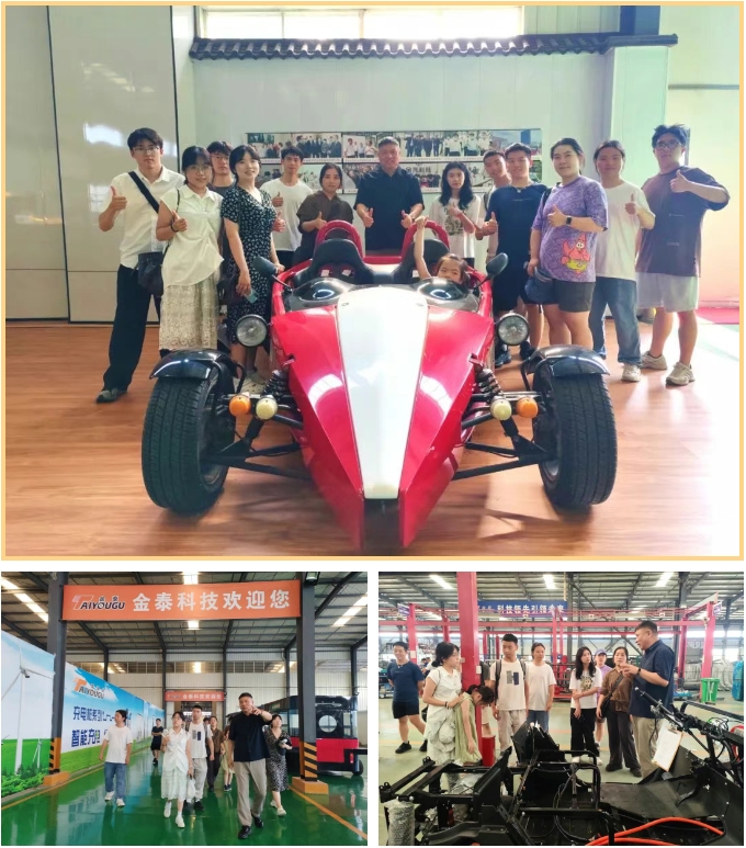 在金龙科技产业园,考察团参观了新能源汽车生产线,了解了泰油谷集团的充电桩、高低压电气成套设备装置、智能电气、光伏储能、环境设备、高低压电器元件等业务板块的情况,对泰油谷集团多元化布局的创新思变感慨不已。据了解,泰油谷集团产品在国内外销售领先,其中UTV电动汽车获欧盟EEC认证,畅销全欧洲和美国、澳洲、非洲及东南亚等53个国家和地区。