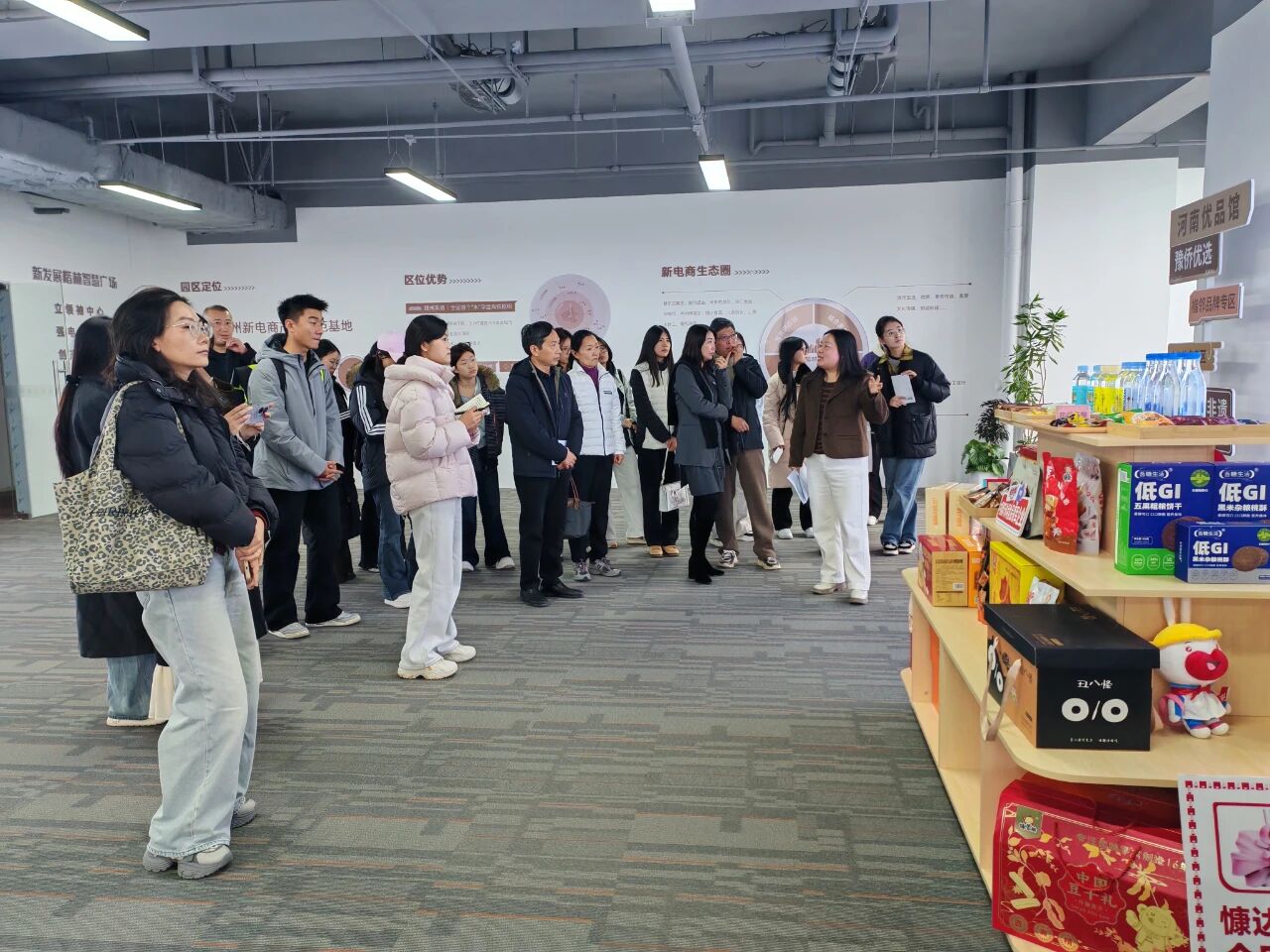 座谈会后,与会人员共同参观了“河南优品馆-豫侨优选”展馆,进一步加深对平台运营的直观认识。师生还走访了入驻楷林写字楼的企业——梦尔达科技,实地了解企业运营与就业场景,为后续合作奠定实践基础。