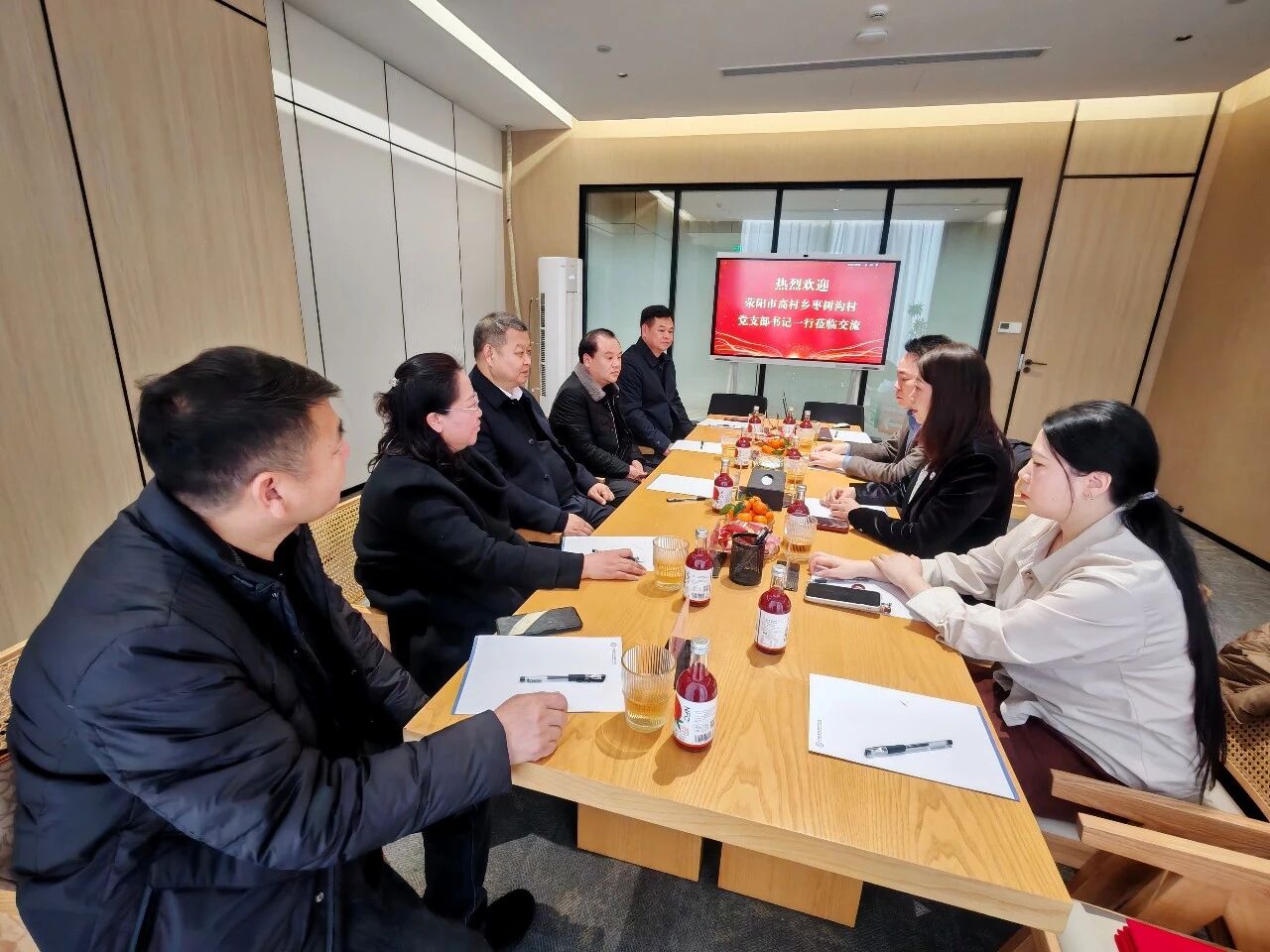 在随后的交流环节中,与会代表进行了热烈而深入的互动。大家对河阴石榴的独特品质、精深加工技术以及枣树沟村的文旅发展规划表现出浓厚兴趣,并就产品定位、市场渠道拓展、文旅融合模式等提出了诸多建设性意见。大家一致认为,此次合作只是一个起点,未来可以探索更多元、更深层次的合作模式,真正实现资源共享、优势互补、共同发展。