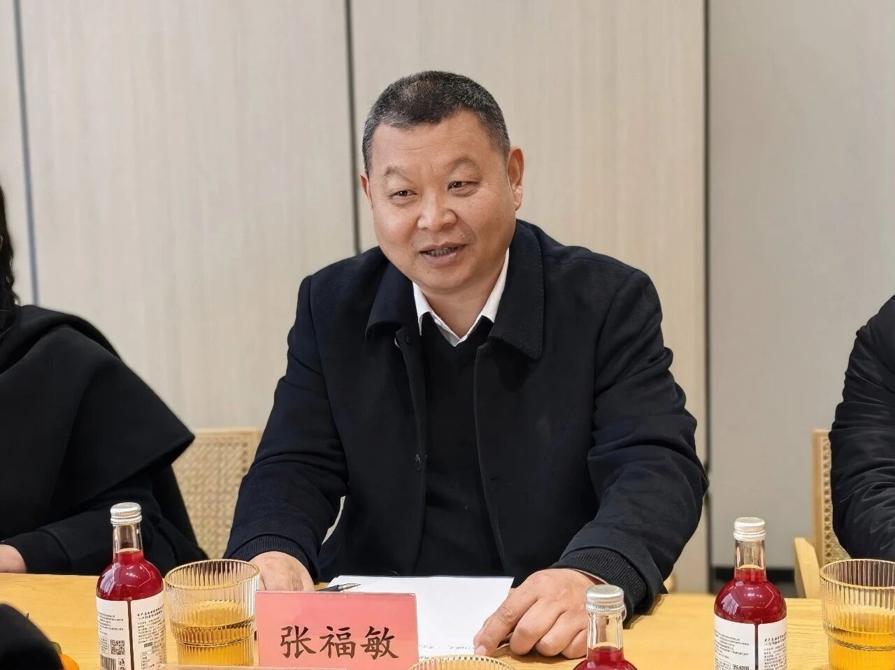 张福敏首先致辞,生动描绘了家乡画卷:村庄位于郑州西北部,黄河沿村而过,沟壑天成,荣获多项国家及省市级荣誉。他回顾了高村乡人民政府通过举办河阴石榴文化节、发展石榴种植让群众“富起来”,通过建设美丽乡村让村容“美起来”,通过创建河南省五星党支部让党群力量“强起来”的奋斗历程。面向未来,张福敏重点介绍了枣树沟村未来的发展规划:一是依托荥阳文化及产业优势,投资建设特色民宿集群,已引进深圳黄河谣民宿项目,旨在带动人流,为石榴产业深化发展奠定基础;二是大力发展河阴石榴精深加工产业,积极开发石榴茶、汁、酒、酱等产品,挖掘石榴药用价值,延伸产业链条。他恳请河南省侨商联合会给予大力支持,共同将河阴石榴这一地理标志品牌做大做强,真正壮大集体经济,带动群众持续增收。