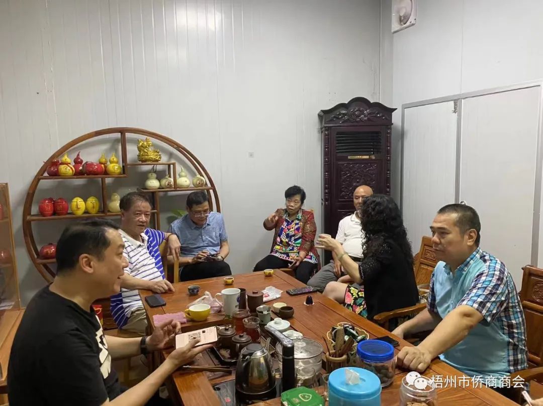 2022年5月9日,梧州市侨商商会会长庄建彪一行到侨商会荣誉会长梁国培、会员程海等企业开展走访慰问活动,茶话会交流,送上问候和祝福。