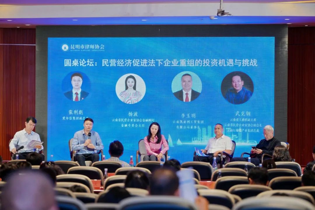 在随后的圆桌论坛会上,爱尔信集团副总裁张利彪,云南省民营企业家协会金融顾问杨波,云南凯旋利工贸集团有限公司董事长李玉明,云南红葡萄产业集团董事长,云南省工商联副主席兼云南省民营企业家协会副会长、云南省侨商联合会名誉会长、港资资深企业家武克钢等领导与专家们,围绕“民营经济促进法下企业重组的投资机遇与挑战”主题畅所欲言、各抒己见,从不同的角度展开了热烈讨论,提出各自观点与建议意见,为企业重组实践提供了多元视角。中国中信金融资产管理股份有限公司云南省分公司,在推介中介绍了其在不良资产处置、困境企业纾困等领域的实践成果,展示了资管公司在整合资源、化解风险方面的专业能力,为困境企业重组提供了新的思路与合作方向。