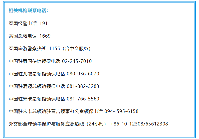 近日,泰柬军队在边境地区发生交火,已有人员伤亡的报道。中国驻泰国使馆提醒在乌汶、四色菊、素林、武里南、沙缴、尖竹汶、达叻等七个府有关区域的中国公民,密切关注边境地区安全形势,留意泰政府部门发布的安全提示和指引,加强防范,注意自身安全,避免前往边境地区。如遇紧急情况,请及时报警并向驻泰国使领馆寻求协助。