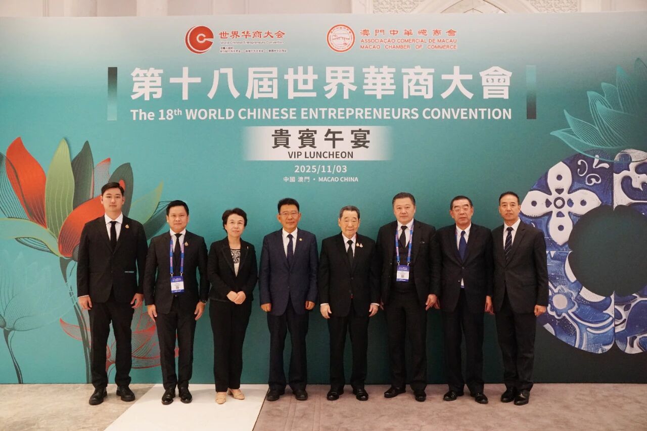 11月3日,由澳门中华总商会主办的第十八届世界华商大会在澳门隆重开幕。中共中央政治局常委、全国政协主席王沪宁发来贺信,向大会的召开表示热烈祝贺,向与会的全球华商代表、海内外侨胞及各界人士致以诚挚的问候。全国政协副主席何厚铧、咸辉,中央和国家机关有关部门、有关团体负责同志,澳门特别行政区行政长官岑浩辉及相关政府官员,中央驻澳机构主要负责同志,以及来自全球50多个国家和地区的华商代表、专家学者、政企界人士共4000余人参会。中国侨商联合会会长、正大集团资深董事长谢国民率中国侨商联合会近80位侨商组成的代表团出席大会,中国侨商联合会常务副会长、正大集团董事长谢吉人出席大会。