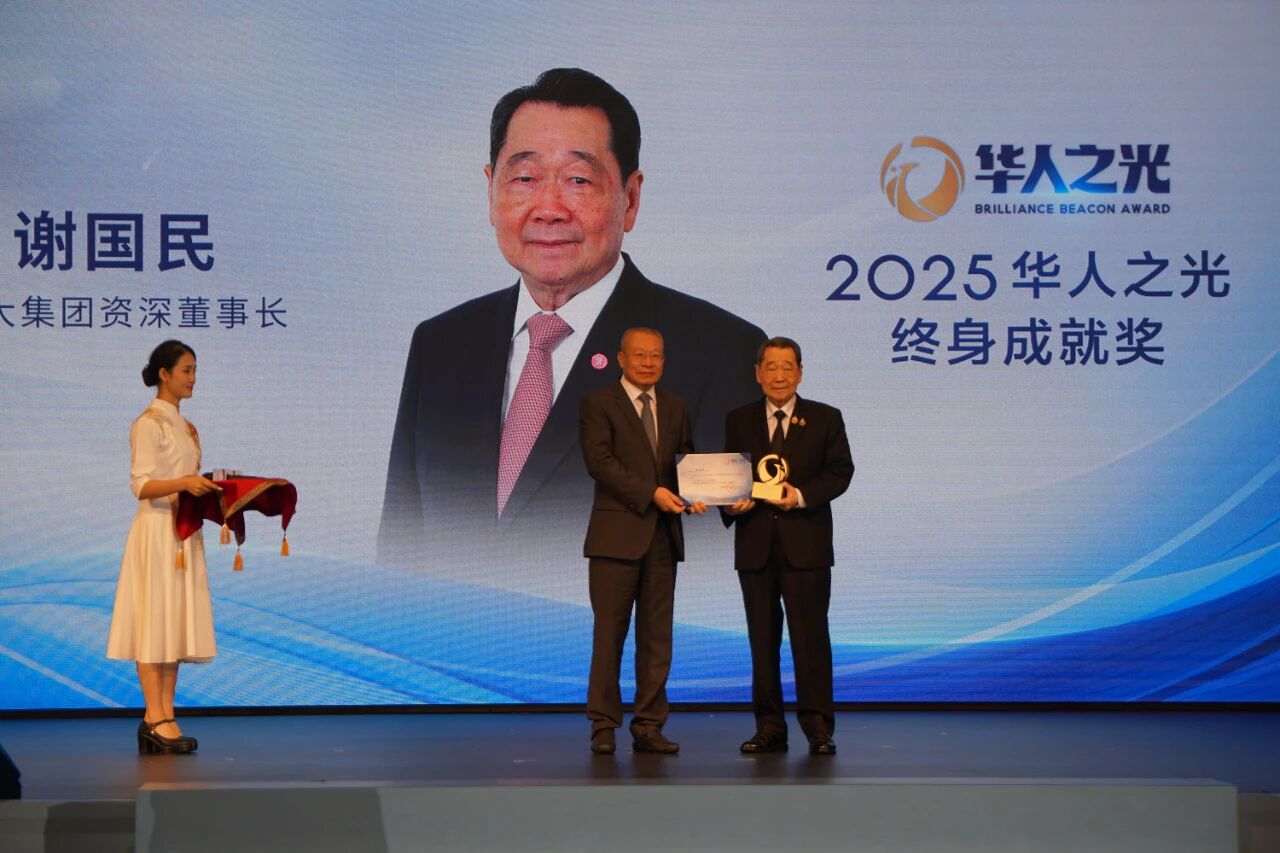 3日晚,谢国民集团资深董事长、谢吉人集团董事长参加了首届“华人之光”年度人物颁奖盛典。本届盛典以“华人之光,照亮世界”为主题,旨在礼赞在实业报国、科技创新、文化传播、全球治理等领域作出卓越贡献的杰出华人代表,谢国民集团资深董事长获颁2025华人之光终身成就奖,凤凰卫视总编辑、执行董事、凤凰网董事长兼CEO孙玉胜为其颁奖。